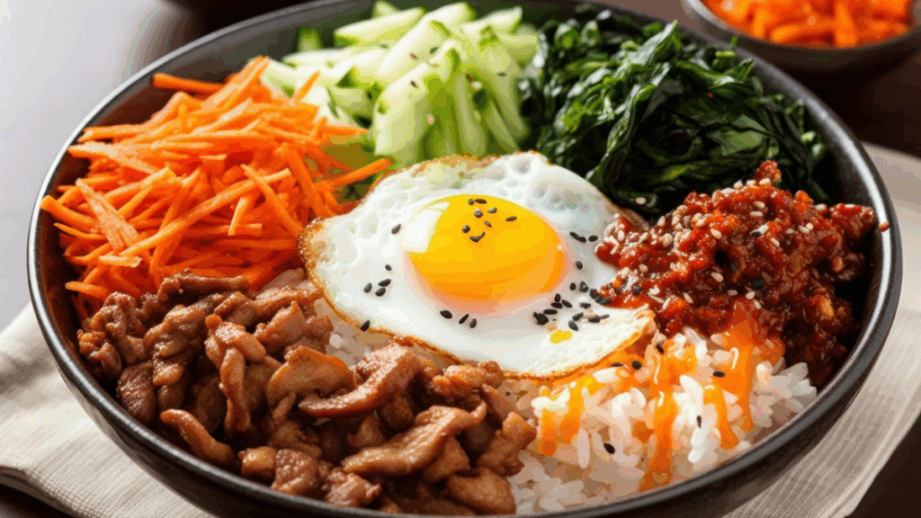 บิบิมบับ (Bibimbap) หรือข้าวยำเกาหลี คืออีกหนึ่งเมนูที่สะท้อนแนวคิดเรื่องสมดุลอย่างแท้จริง “บิบิม” หมายถึง “การคลุก” ส่วน “บับ” หมายถึง “ข้าว” ดังนั้น บิบิมบับจึงหมายถึง “ข้าวคลุก” ที่รวมรสชาติหลากหลายไว้ในชามเดียว